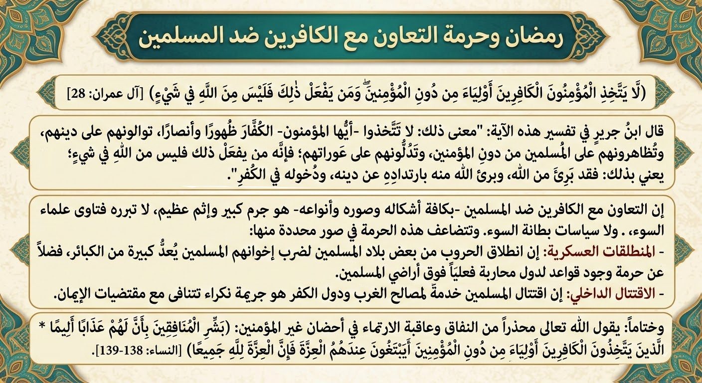 رمضان وحرمة التعاون مع الكافرين ضد المسلمين